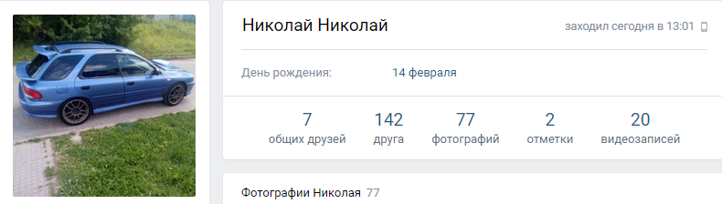 | Страница ВКонтакте Николай Николай | https://vk.com/ id366031965 |