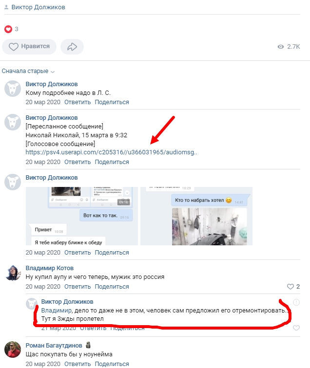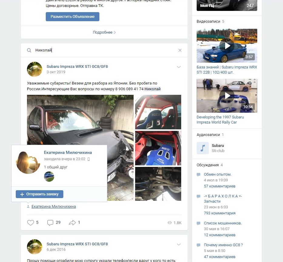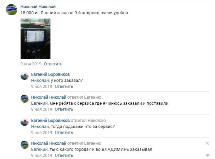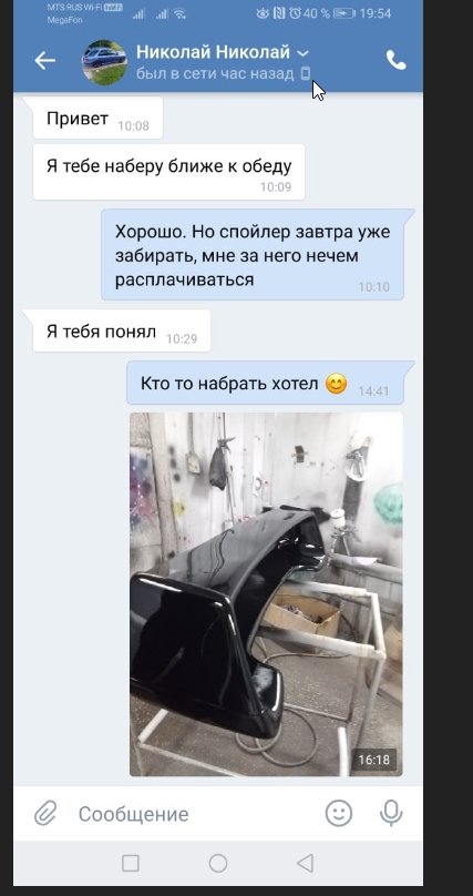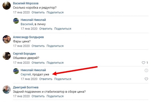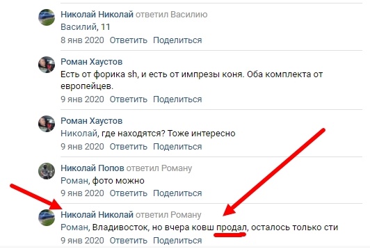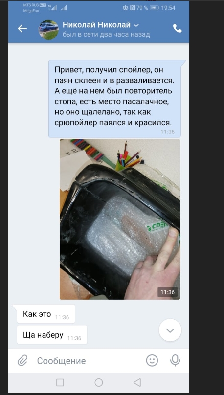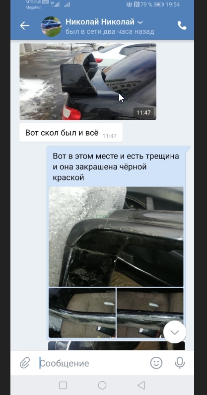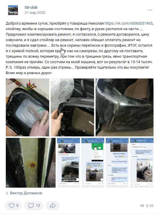Есть и такое сообщение, где человек говорит, что купил у Николая деталь для машины, а в итоге она пришла сломанная.
